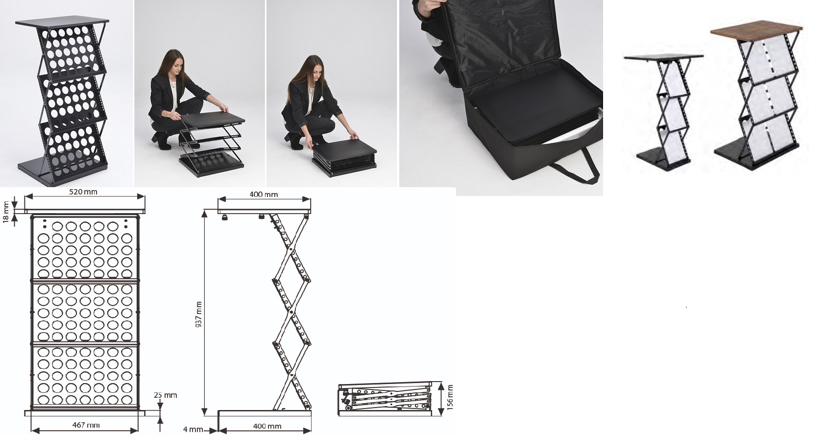 Robuuste uitklapbare lezenaar c.q. balie met beuken topblad en de mogelijkheid om aan de voorkant 6x A4 of 3x A3 brochures te presenteren. Wordt geleverd met nylon draagtas.