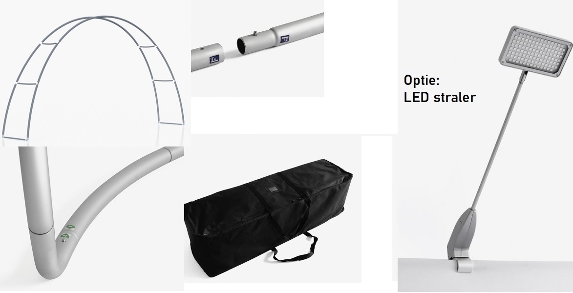 Dit is een spectaculair nieuw superlicht buizensysteem door zijn strakke vorm en de grootformaat visual die men hiermee kan presenteren. Het systeem is er in meerdere vormen en afmetingen. Het aluminium framesysteem bestaat uit 43 mm buizen die gekoppeld worden door middel van een veer- kliksysteem. Het frame wordt in zijn geheel overtrokken met een grootformaat ecologisch full colour gedrukt decor 205 gr, brandvertragend B1 stretchdoek voorzien van een kwaliteitsrits. De kwalitatief hoogwaardige f.c. print is op beide kanten aangebracht. Levering inclusief draagtas. Het geheel weegt maar 15 kg. Zie tevens bijgevoegde afbeeldingen en video weliswaar van een iets ander systeem maar het principe is gelijk. Drukklaar bestand in pdf aanleveren (opmaakbestand is op aanvraag beschikbaar); tegen meerprijs kunnen wij deze ook voor u opmaken. Het drukbestand controleren wij nauwkeurig en voor wij gaan drukken. U ontvangt een drukproef ter controle en goedkeuring.